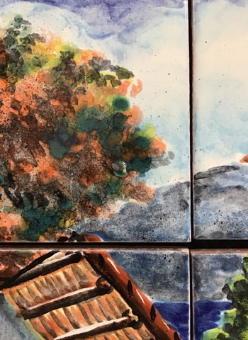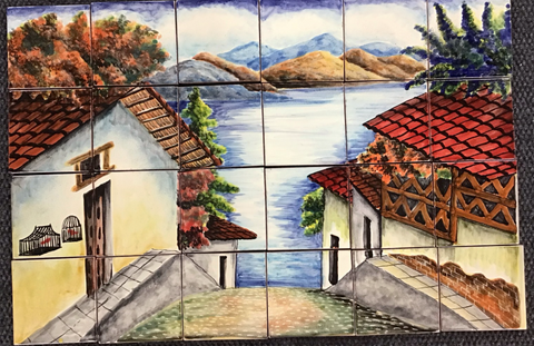 This mural contains twenty-four hand-painted 4"x4" tiles for an overall size of 25 1/2" x 17".